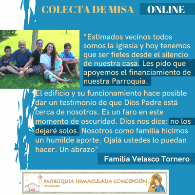"Estimados vecinos todos somos la Iglesia y hoy tenemos que ser fieles desde el silencio de nuestra casa. Les pido que apoyemos el financiamiento de nuestra Parroquia. El edificio y su funcionamiento hace posible dar un testimonio de que Dios Padre está cerca de nosotros. Es un faro en este momento de oscuridad. Dios nos dice "no los dejare solos". Nosotros como familia hicimos un humilde aporte. Ojalá ustedes lo puedan hacer. Un abrazo"