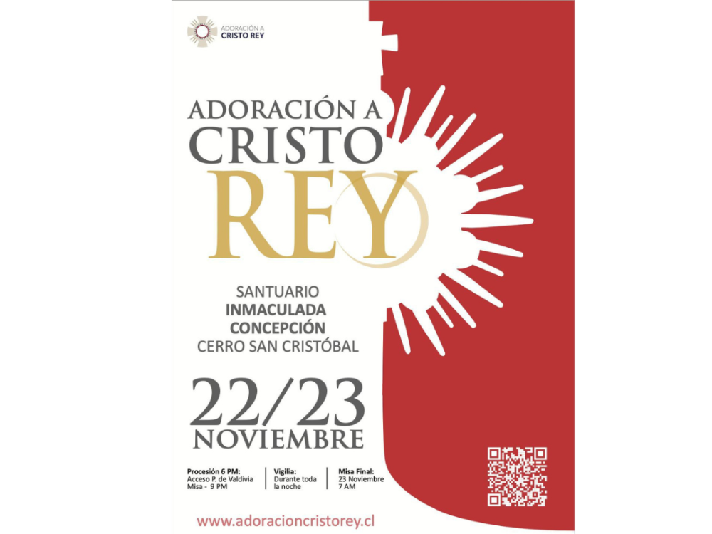 El próximo sábado 22 de noviembre, víspera de la Solemnidad de Cristo Rey, cientos de fieles se reunirán en el Santuario de la Inmaculada Concepción, en el Cerro San Cristóbal, para proclamar públicamente su fe en Jesús Sacramentado, Señor y Rey de la creación.
