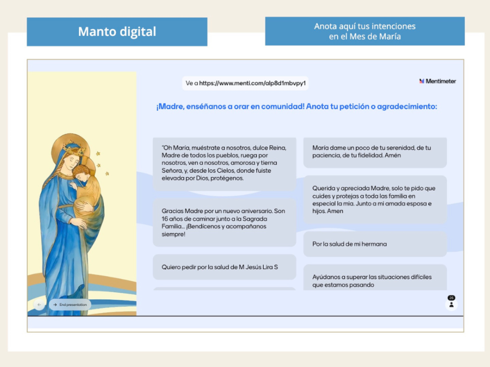 El “Manto de María digital”: un espacio de oración en nuestra página web, para que escribas desde cualquier lugar lo que te nazca del corazón.